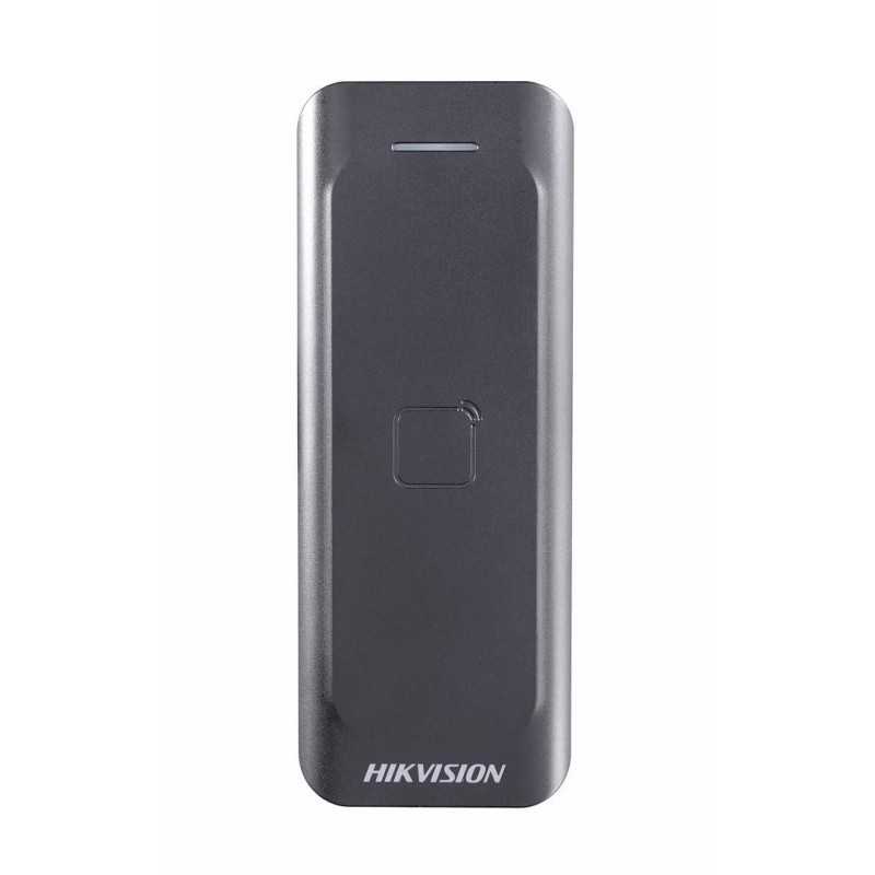 Card reader Hikvision, DS-K1802E; Reads EM card; Card Reading Frequency: 125KHz; Processor: 32-bit; Reading Range: ≤50mm (≤1.97"); Supports Wiegand(W27/W35) protocol, Dust-proof, IP 65.