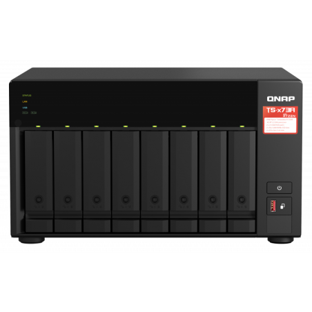 NAS QNAP 873A 8-Bay, CPU AMD Ryzen V1000 series V1500B 4C/8T 2.2GHz, RAM 8GB (1x 8GB) DDR4 (2 x SODIMM slots, max. 64GB, suport optional ECC RAM), 8x 2.5/3.5 SATA 6Gbps, 2x M.2 2280 NVMe PCIe Gen3 x1 HDD (neincluse), LAN: 2 x 2.5GbE (optional port 10GbE prin placa PCIe), tower, Single PSU, 250W, garantie 3 ani