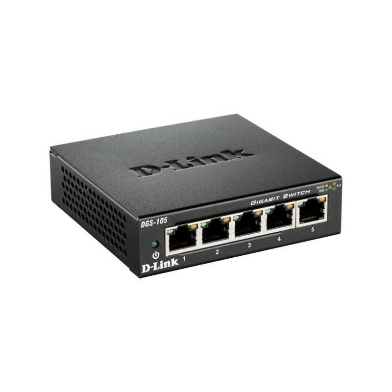 Switch D-Link DGS-105, 5 porturi Gigabit, Capacity 10Gbps, desktop, fara management, metal, negru