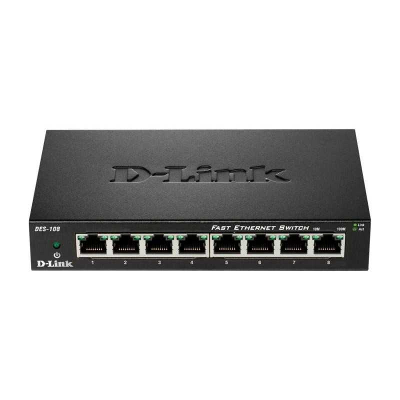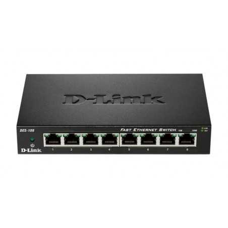 Switch D-Link DES-108, 8 porturi 10/100Mbps, desktop, fara management, metal, negru